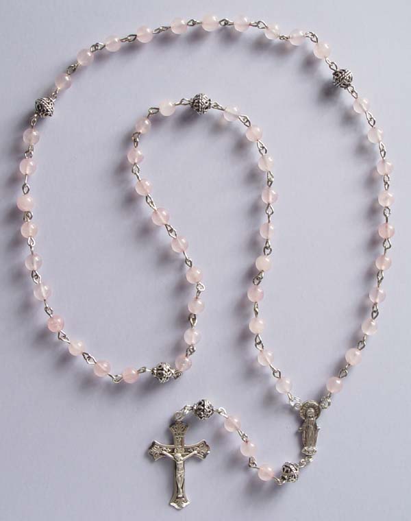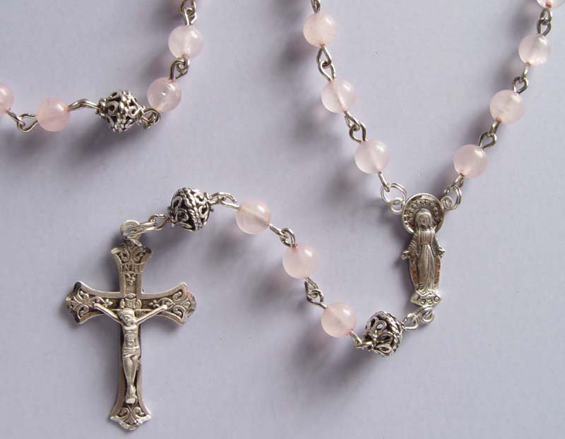 Rose Quartz w. Sterling Bali beads - 6mm 5 decade child rosary. Handcrafted w Sterling Silver.