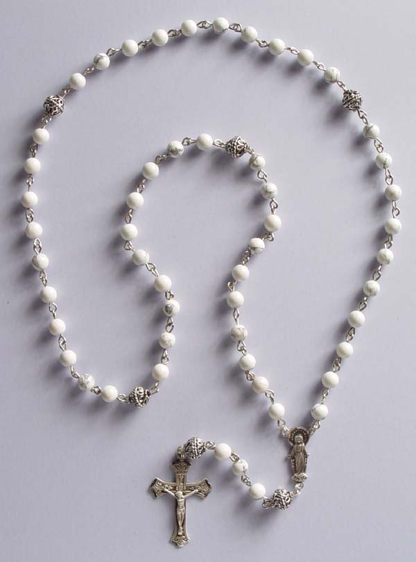 White Howlite w. Sterling Bali beads - 6mm 5 decade child rosary. Handcrafted w Sterling Silver.