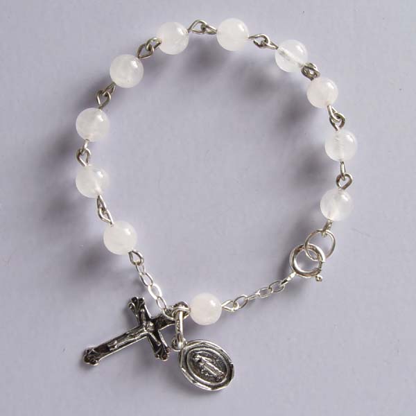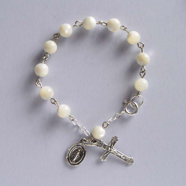 Mother of Pearl - 6mm Child rosary bracelet. Handcrafted w Sterling Silver. Size options are available at checkout