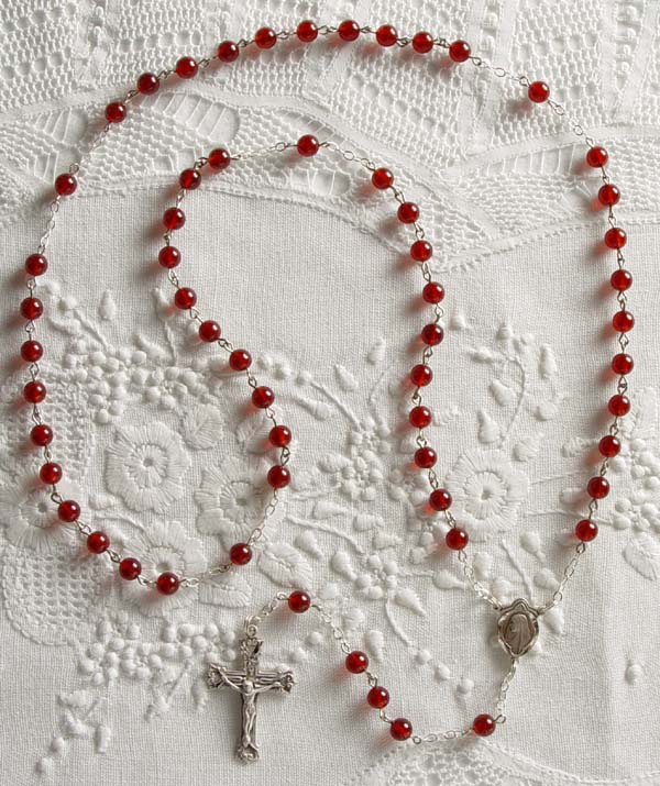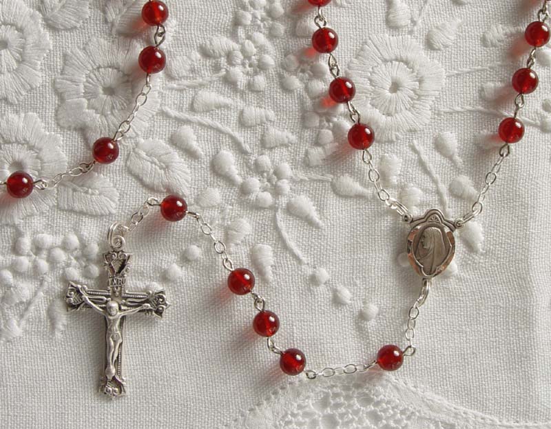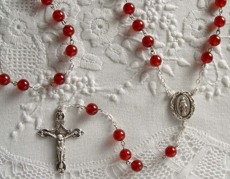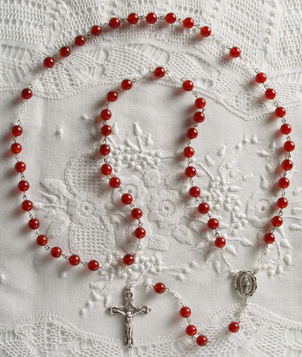 Carnelian - 6mm 5 decade rosary. Handcrafted w Sterling Silver. [ Bag: velvet bag ]