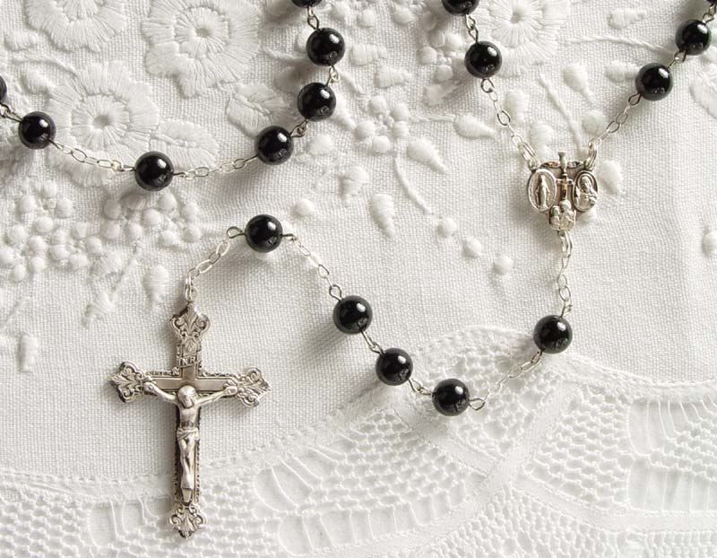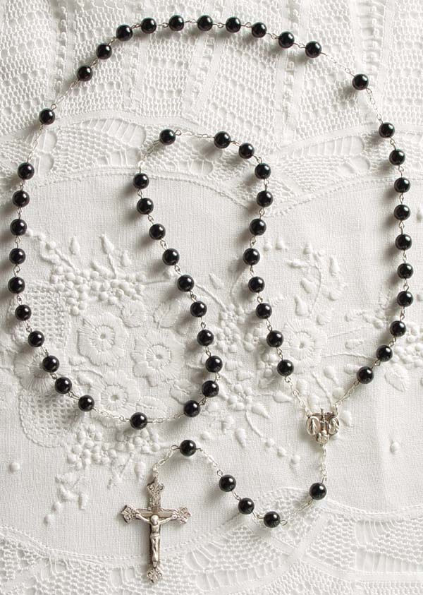 Black Onyx - 8mm 5 decade rosary. Handcrafted w Sterling Silver. [ Bag: velvet bag ]